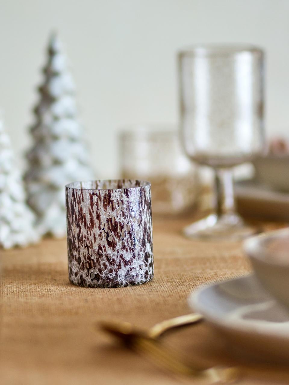 Il Votivo Felicita di Bloomingville è realizzato in vetro riciclato e progettato con una finitura antica. Le tonalità di marrone e bianco rendono il portacandela un elemento decorativo che si adatta perfettamente alla casa, sia che venga utilizzato con una candela che senza.