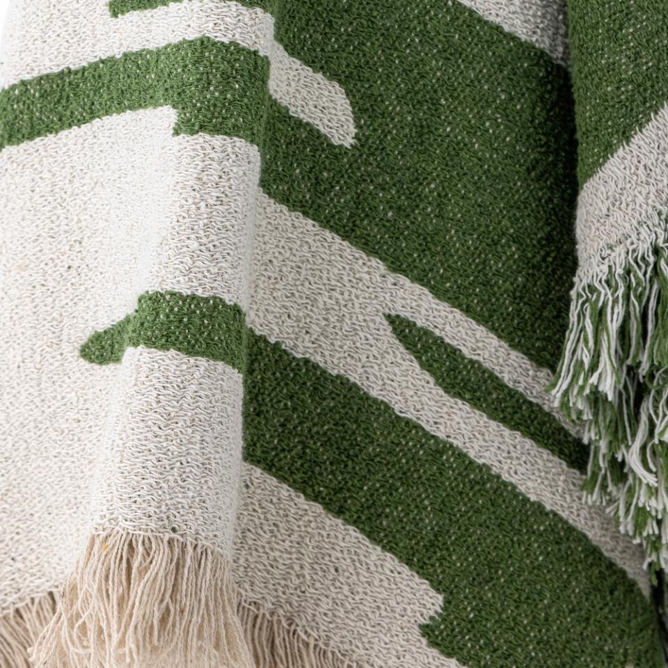 Il Plaid Haxby di Bloomingville è tessuto in cotone riciclato con comode frange sui bordi. La coperta è doppio lato e presenta un bellissimo motivo nei toni di verde e colori naturali chiari.