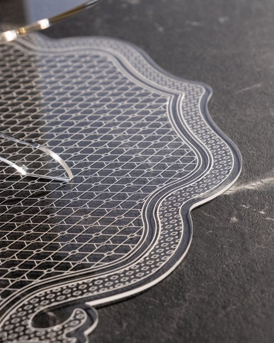 I sottopiatti della linea Le Jardin sono realizzati in cristallo acrilico. Sono impermeabili e facilmente lavabili.