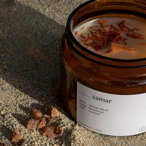 100% cera di soia colata a mano in un elegante vasetto di vetro ambrato con tappo in alluminio, stoppino in legno proveniente da foreste certificate FSC (concesso in licenza da Lumetique Inc.) e oli profumati di alta qualità infusi con oli essenziali.