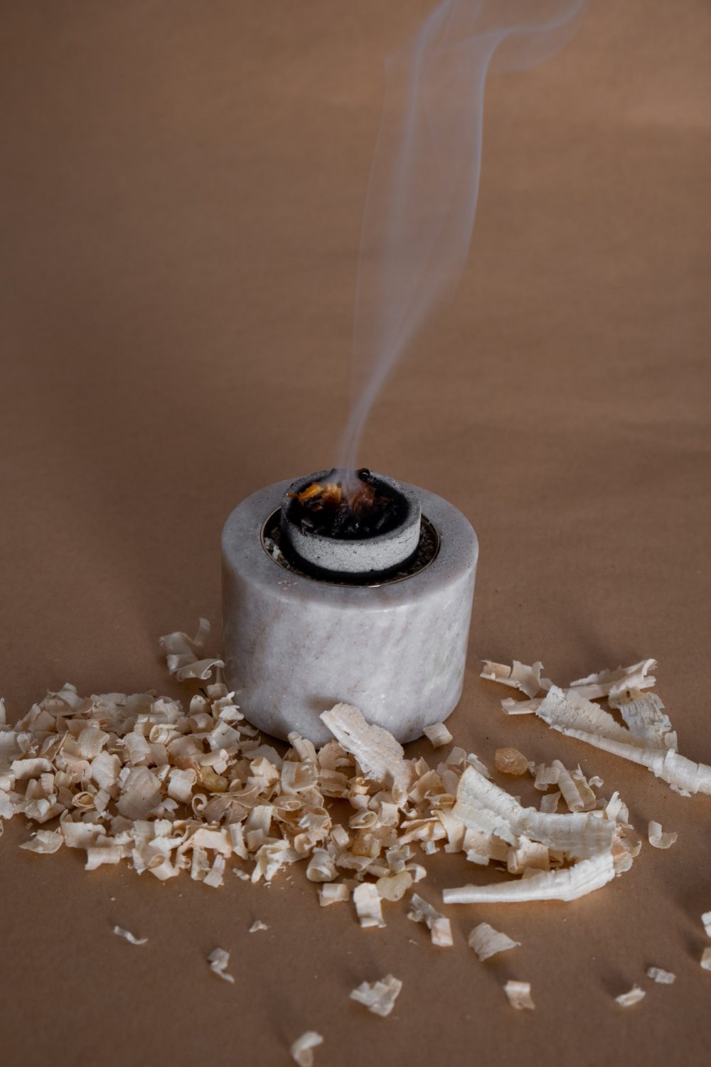 UTILIZZO: Posizionare il carboncino su una base ignifuga o dentro un brucia incenso e accenderlo bruciandone i bordi. Aggiungere una piccola quantità di incenso (un cucchiaino) sopra il carboncino e lasciare che il fumo si propaghi nell’ambiente.