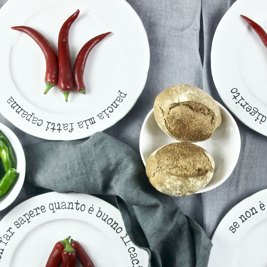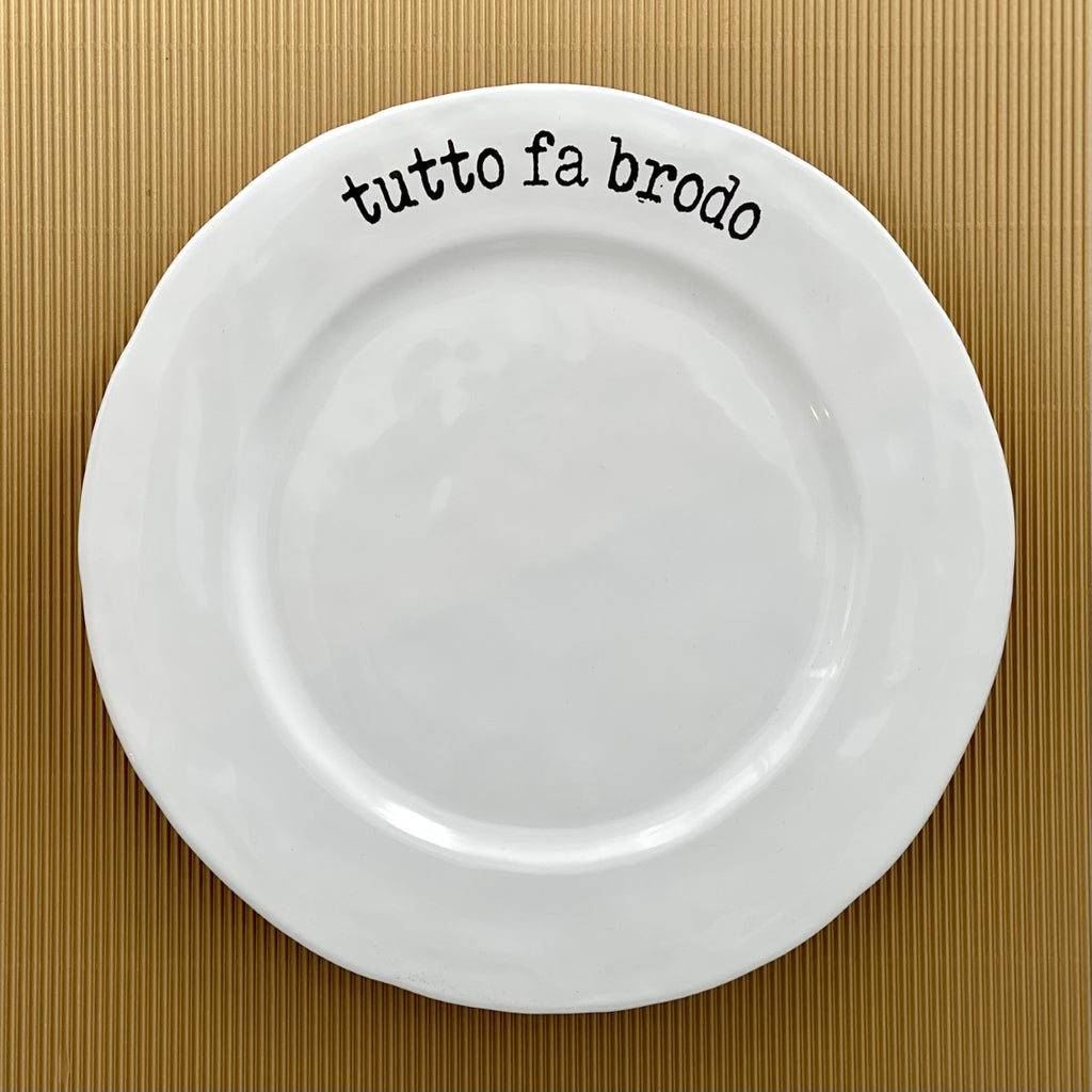 Piatto irregolare con scritta "TUTTO FA BRODO" per una tavola diversa dal comune e spiritosa.