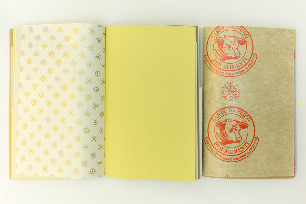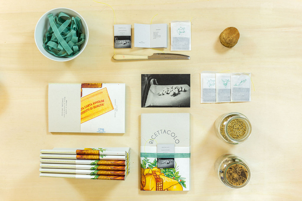 Ricettacolo è un quaderno che gioca mescolando le carte, realizzato per custodire gustose ricette e freschi pensieri, dalla carta per la carne a quella per il pane, fino alla carta con i soli dorati usata per avvolgere i dolci. Per lasciarsi ispirare, non solo in cucina.