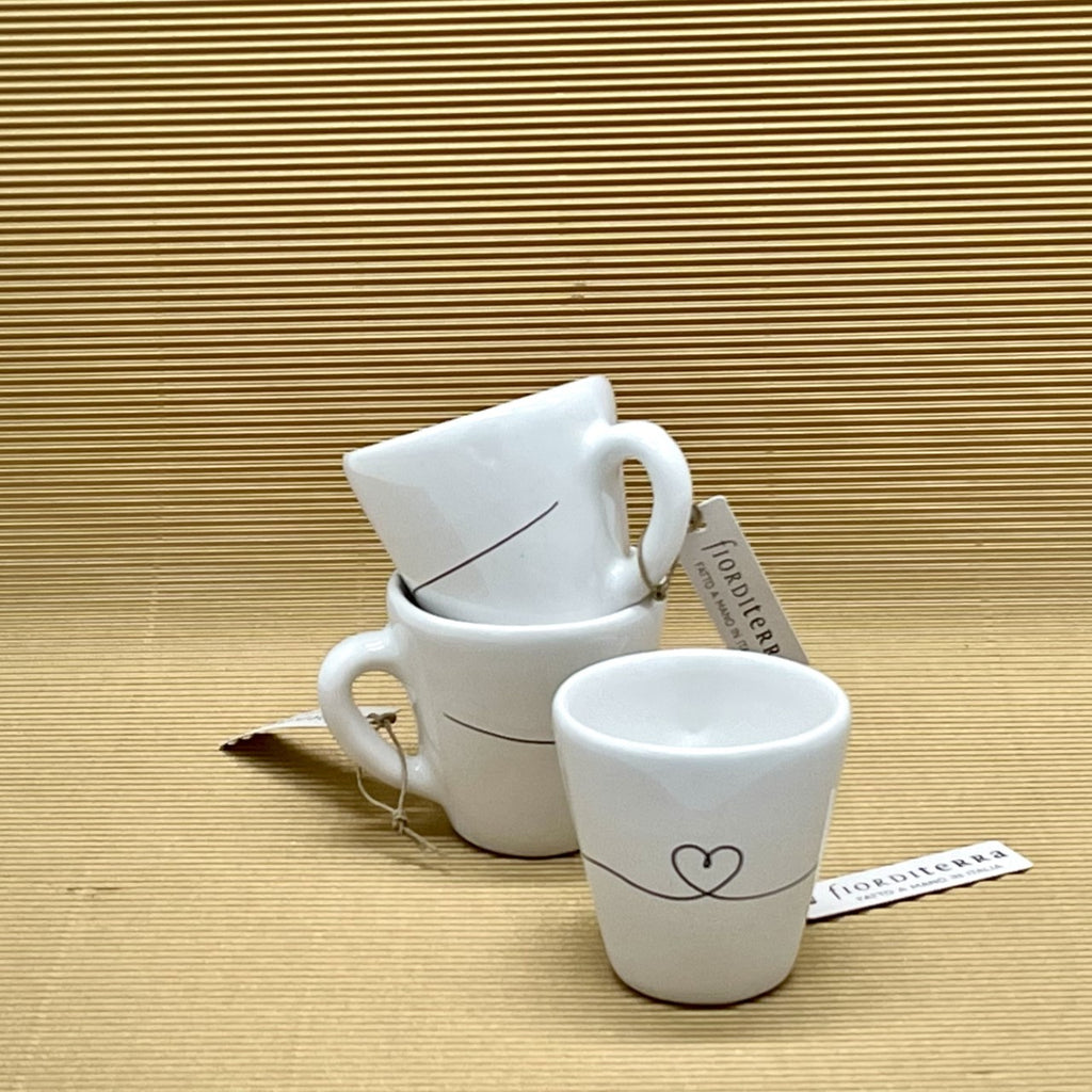 Tazzina da caffè in ceramica della linea CALLIGRAFA di FIORDITERRA. La semplicità delle proporzioni unite alla "bella grafia" della scritta CUORE sono il tratto distintivo di questa tazzina destinata a diventare la tua preferita. Scopri anche le altre scritte e collezionale!